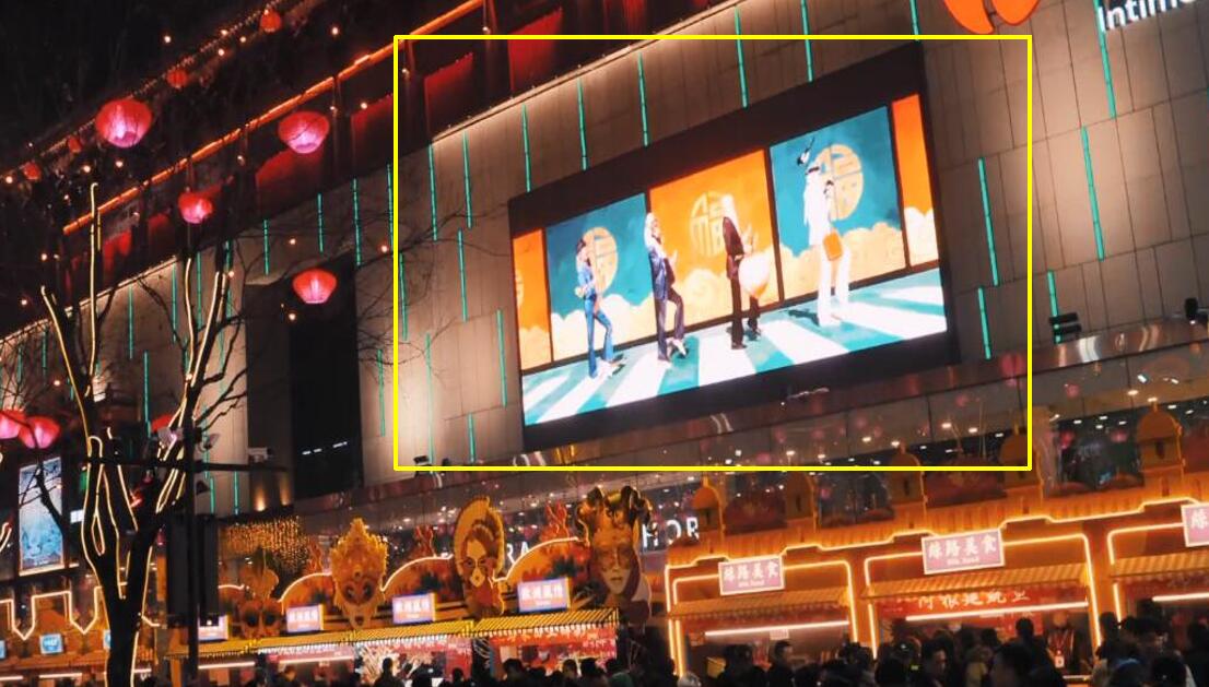 小寨國貿LED顯示屏的有效顯示尺寸畫面比例為4:1,為了保證您的文件演播的過程中不被拉伸不被裁剪,能達到最完美的顯示效果,必須保證您制作的宣傳片或者是宣傳文件等與LED有效顯示尺寸保持同等比例。并且在電腦(1024*768或者以上分辨率)上全屏流暢播放,不抖動不跳幀畫面清晰。