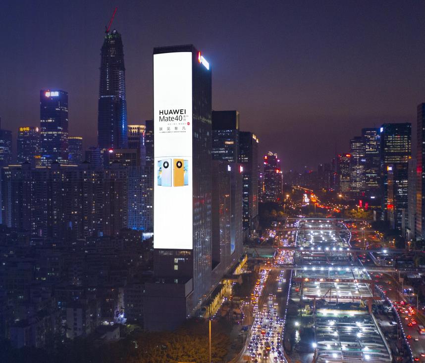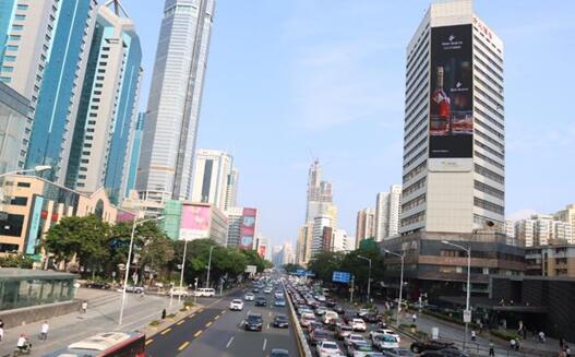 屏體垂直于深南大道,正向視線,有效視距長(zhǎng),航拍視覺(jué)沖擊力大。