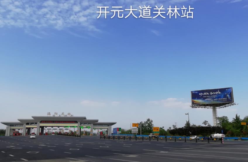 此廣告位位于洛龍區開元大道東段二廣高速關林站區出口處。