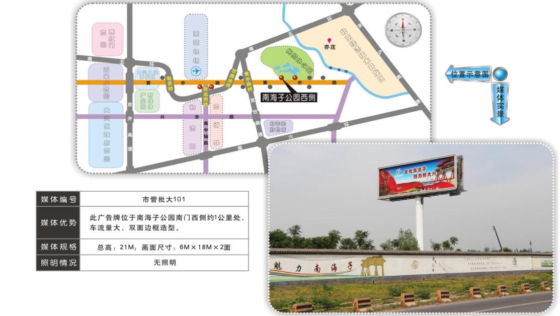 媒體概述:萬事成傳媒提供大興單立柱廣告,亦莊單立柱廣告,大興高炮擎天柱廣告,亦莊高炮擎天柱廣告,京開高米店單立柱廣告,五環(huán)六環(huán)單立柱廣告,大興戶外大牌,亦莊戶外大牌