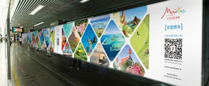 | 上海地鐵廣告-電子媒體--炫動畫墻 位于人民廣場換乘通道兩側,全天候高客流量 2塊PDP+墻貼、3塊PDP+墻貼及5塊PDP+墻貼,形式豐富多樣 屏幕高清巨大,畫面生動,支持動畫形式,極具震撼效果的電子長廊 |