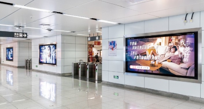 主要分布在站廳的主體墻面上,覆蓋人群包括全站客流及部分過街客流;