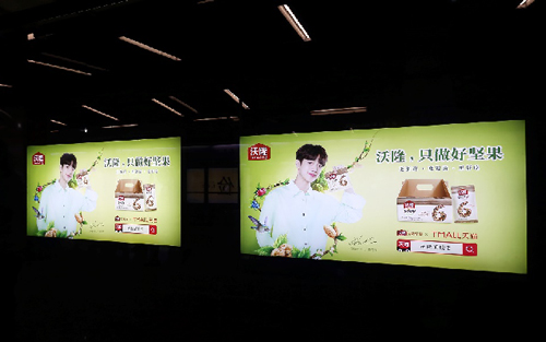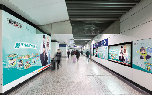 | 創意媒體-南京地鐵雞鳴寺站品牌長廊廣告 線路:3號線 組合形式:9塊12封燈箱+109㎡墻貼 媒體費(元/52周):500,000 制作方式:UV寫真燈片+寫真噴繪 制作費(元/次):41,700 |