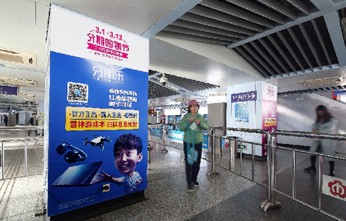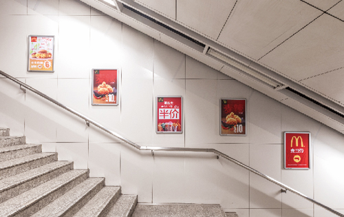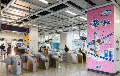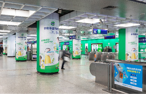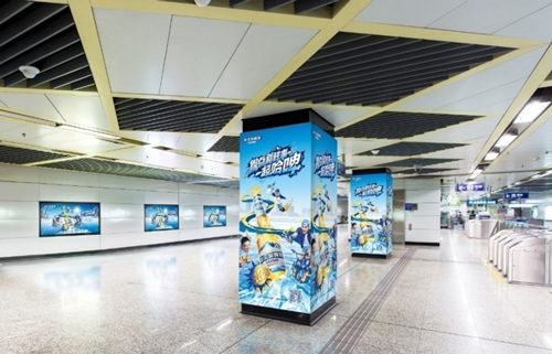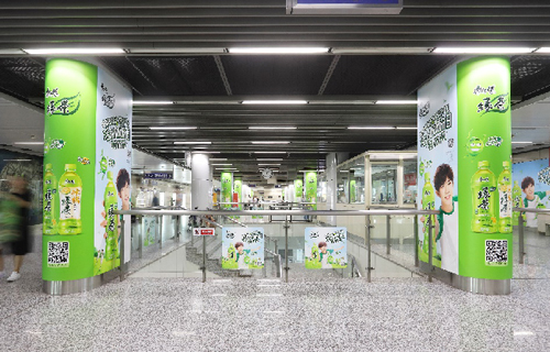 | 創意媒體-南京地鐵仙林中心站社區站廣告 線路:2號線 組合形式 :墻貼2面+柱貼19面 媒體費(元/4周):200,000 制作方式:寫真噴繪 制作費(元/次):35,631 |