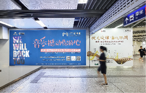 | 創意媒體-南京地鐵集慶門大街站1號品牌通道廣告 線路:2號線 組合形式:1號通道:約196.08㎡墻貼 媒體費(元/52周):400,000 制作方式:寫真噴繪 制作費(元/次):58,824 |