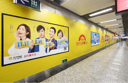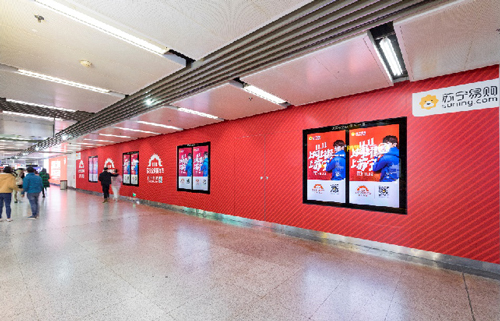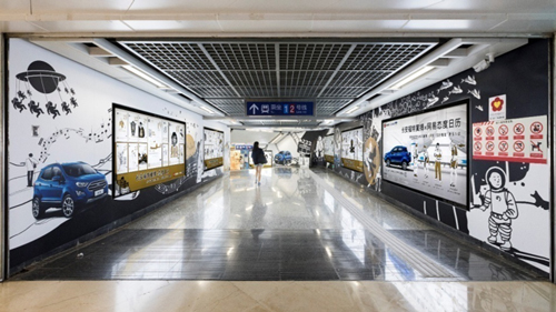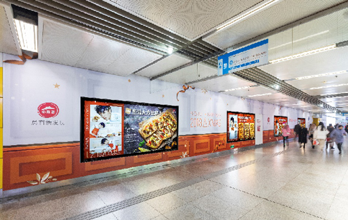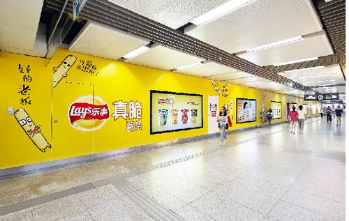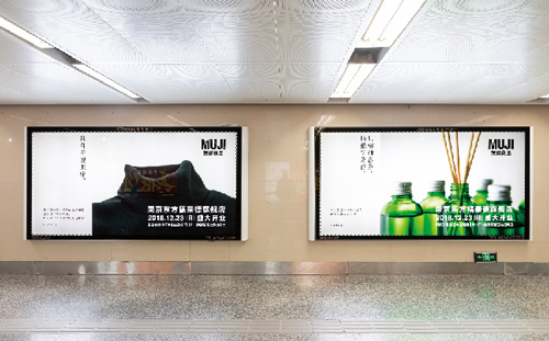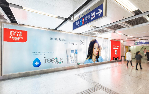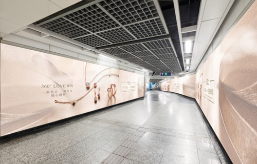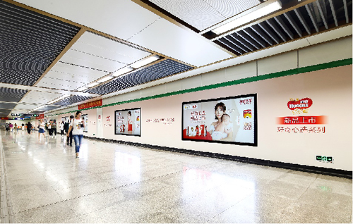 | 創意媒體-南京地鐵新街口站20號品牌通道廣告 線路:1、2號線 組合形式:100㎡頂天立地墻貼 媒體費(元/52周):350,000 制作方式:寫真噴繪 制作費(元/次):30,000 |