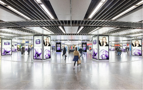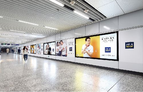 | 創意媒體-南京地鐵大行宮站2號線換乘站廳社區站廣告 線路:2號線 組合形式 :動感長廊(6組12塊雙聯65寸LCD+127.41㎡墻貼)+燈箱長廊(3塊12封燈箱+47.7㎡頂天立地墻貼)+柱貼(不少于50面) 媒體費(元/4周):1,080,000 制作方式:UV寫真燈片+寫真噴繪+電子動畫 制作費(元/次):89,341(墻貼+柱貼+燈片) |