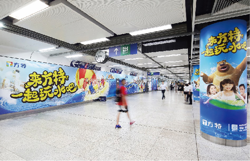 | 創意媒體-南京地鐵新街口站8號品牌通道廣告 線路:1、2號線 組合形式:73.34㎡ 墻貼 媒體費(元/52周):600,000 制作方式:UV寫真燈布 制作費(元/次):22,002 |
