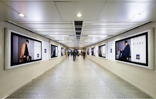 | 創意媒體-南京地鐵站品牌長廊廣告 線路:1、3號線 組合形式:1號線站廳:10塊6封燈箱+95.1㎡墻貼 媒體費(元/52周):500,000 制作方式:UV寫真燈片+寫真噴繪 制作費(元/次):33,330 |