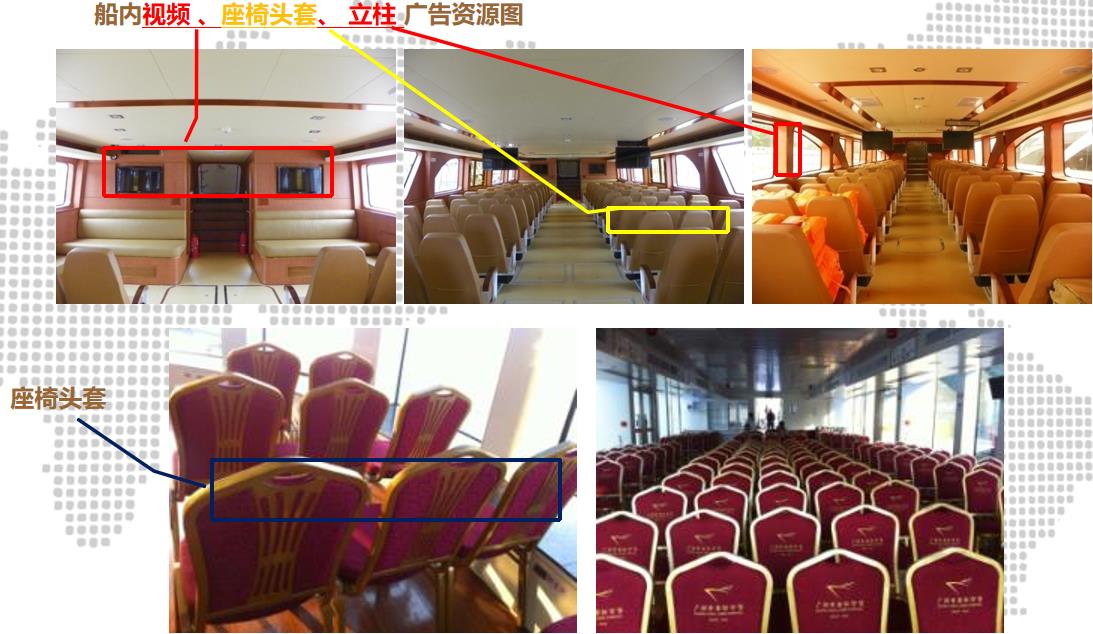 媒體形式:座椅頭套(750個)、船倉內(nèi)立柱(以各船型的實際可做為準(zhǔn))
