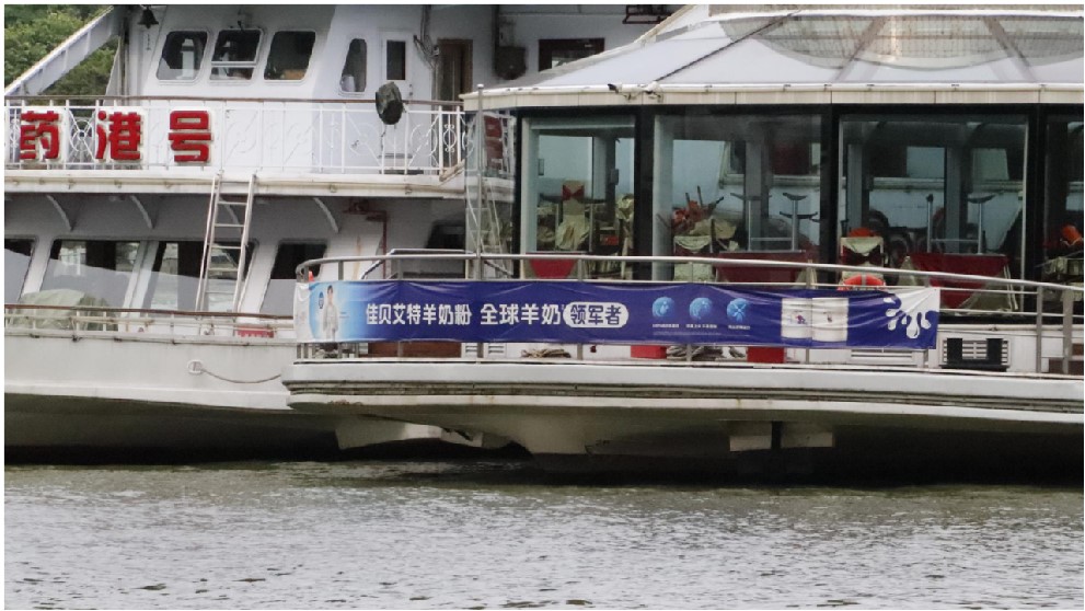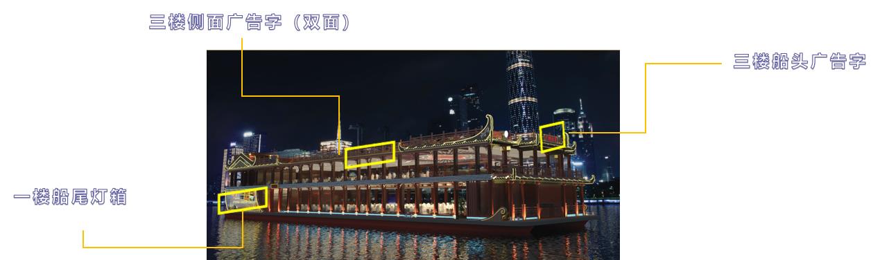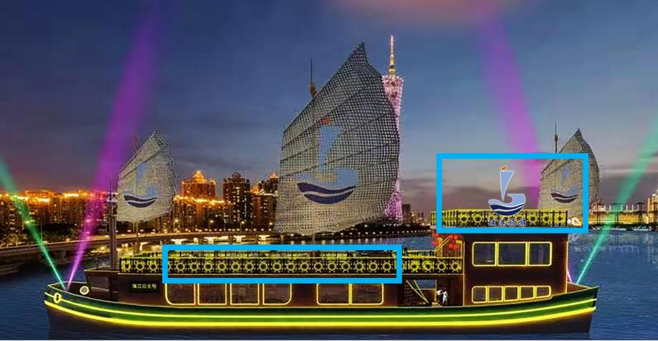 船體廣告多采用燈箱或者LED燈的形式,顯示在游船側(cè)面的醒目位置。