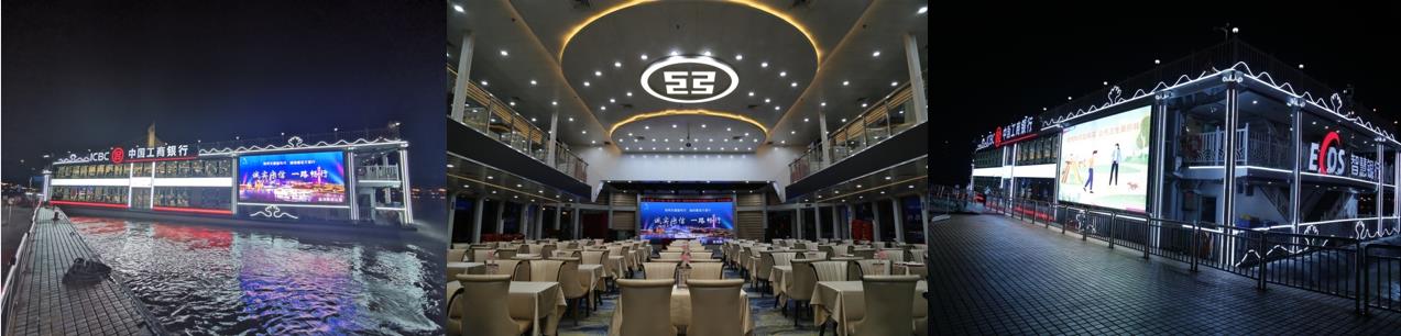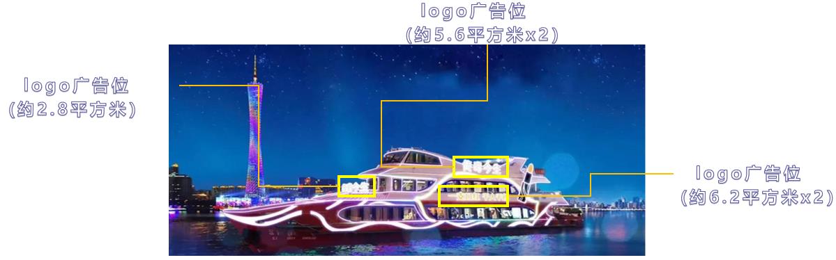 | 媒體尺寸 | 船身外側(cè)廣告字:長-7米、高-0.9米;船頭橫幅廣告位:長-10米,高-1米; 一樓內(nèi)部整面廣告墻:長-3.4米,高-2.8米。 |