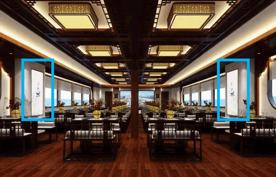游船內(nèi)部廣告位:坐席區(qū)兩側(cè)分布2個豎版廣告展示位