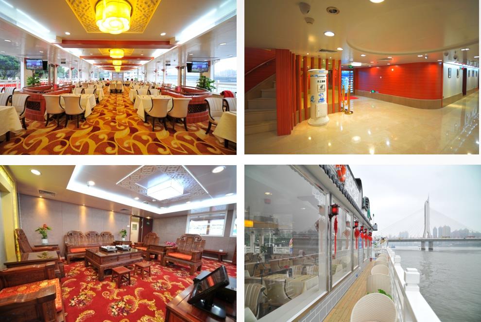 花城明珠號是250客位三層豪華游船,該船整體以中式建筑設(shè)計風(fēng)格為主,裝飾具有濃厚的廣州西關(guān)風(fēng)情。二樓提供豪華西式套餐。三樓露臺空間大視野開闊,讓您無論身在何處,目所能及之處都是美麗的江景。