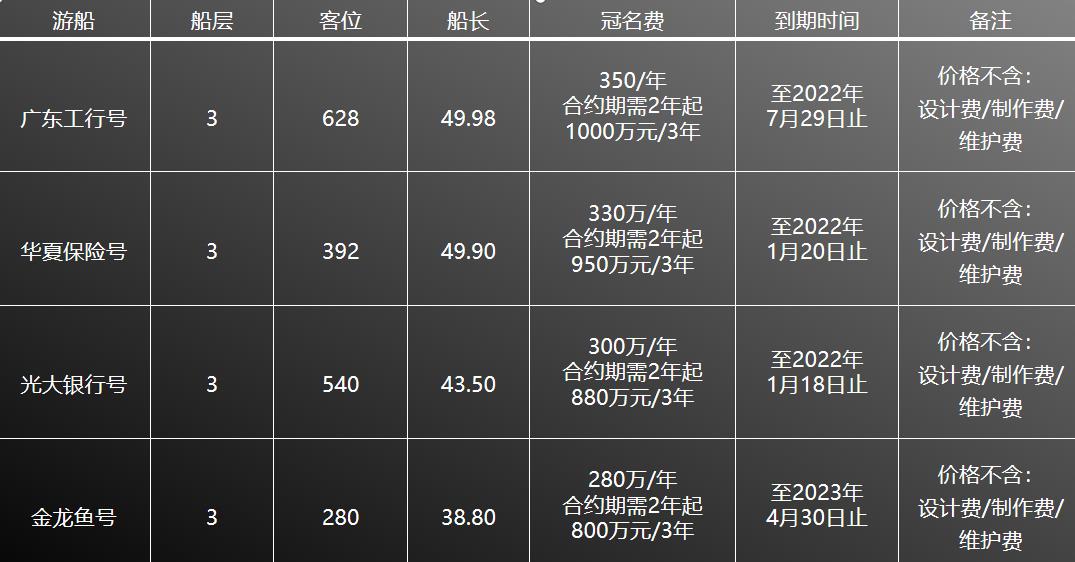 合作形式為:船體廣告 +游船內(nèi)部廣告位