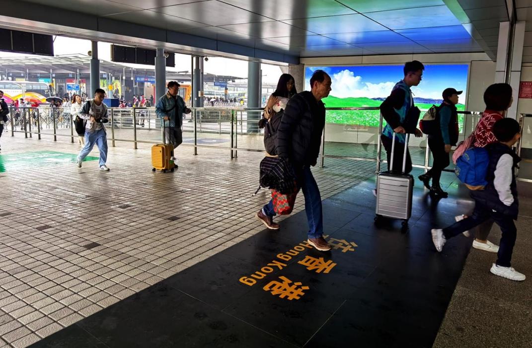 禁區(qū)內(nèi)排隊(duì)出入境的通道上,深港跨境口岸媒體,重要提示,吸引消費(fèi)者蘭注
