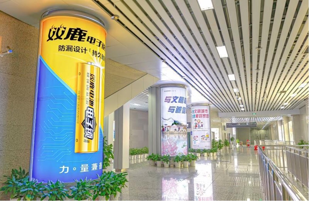 寧波高鐵站燈箱廣告-北廣場2號地鐵口高鐵出口通道圓柱燈箱廣告
