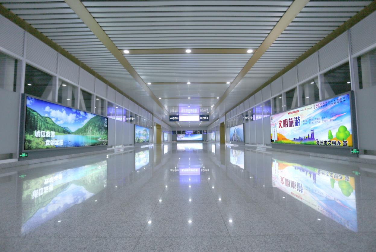 該媒體位于進(jìn)站高架廊橋兩側(cè),是乘客進(jìn)入嘉興南站的第一眼連續(xù)媒體,且是必經(jīng)之路,可謂是通道體系中的黃金廣告位。