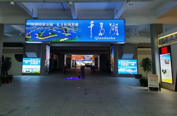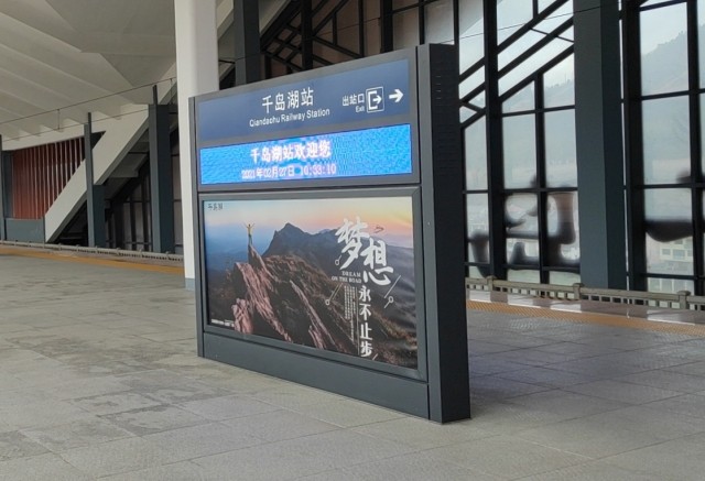 千島湖站候車廳進站檢票口內落地燈箱廣告