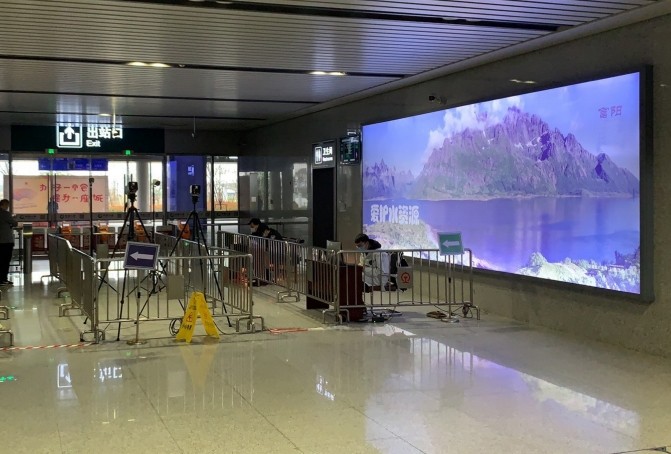 富陽站出站廳出站檢票口墻面燈箱廣告