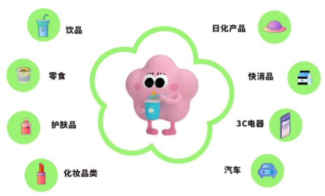 合作品類涵蓋:飲品、零食、護膚品及化妝晶類、日化產品、快消品、3C電器、汽車等。