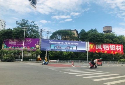 此廣告位于瑤坪南路十字路口幕墻廣告位,人車流量大,廣告位置顯著,效果好