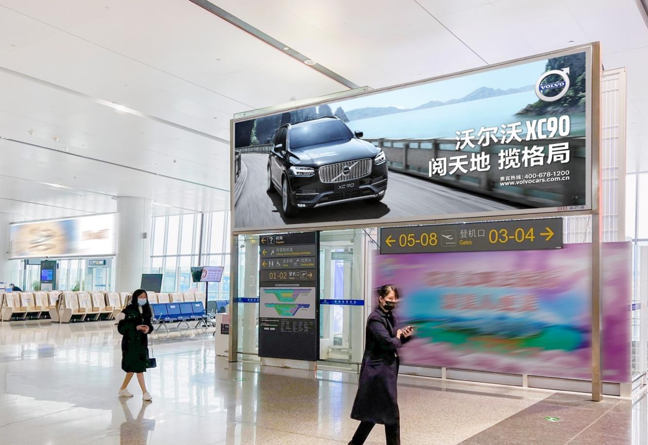 廣告位置:二層國內(nèi)出發(fā)候機(jī)大廳登機(jī)口正上方 (旅客行走方向正迎面)