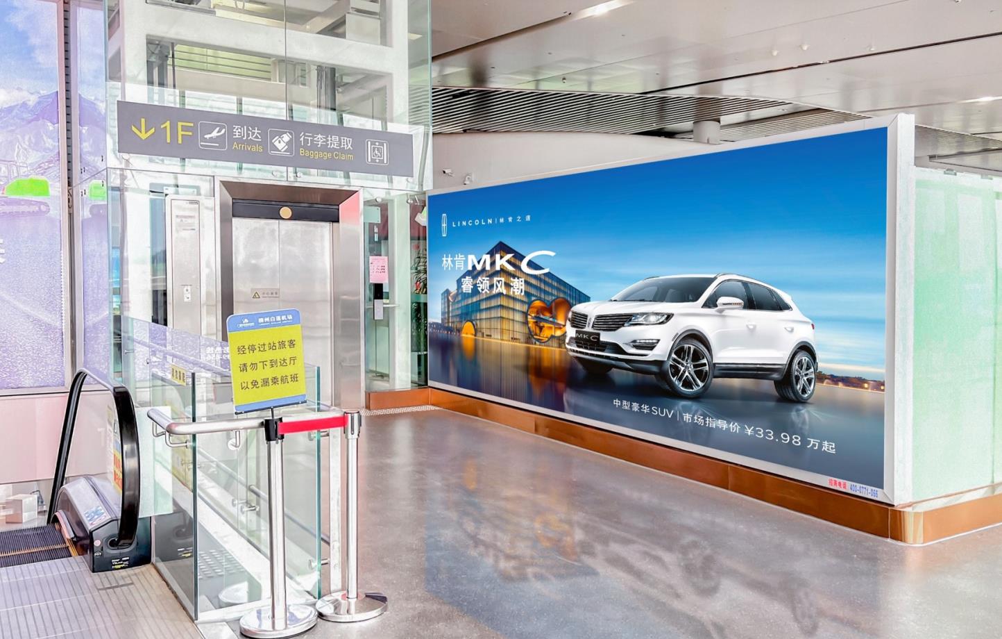 二層國內(nèi)出發(fā)到達(dá)混合通廊下電梯旁廣告