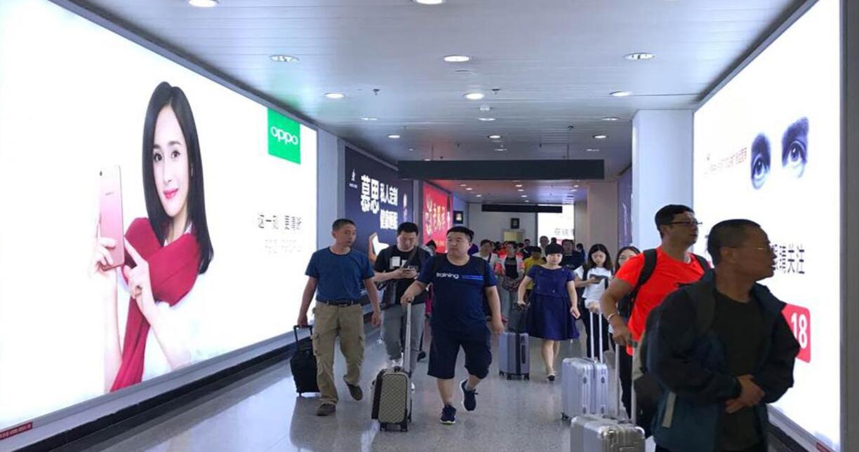 | 該媒體位于機場出發大廳安檢通道兩側,占據了機場的安檢口、值機區等關鍵有利的位置,媒體到達率相對較高。旅客在此登機安檢滯 留時間長,易引起旅客觀注,屬100%被迫受眾媒體和強制瀏覽. 媒體形式:看板 ;尺寸:20m*3.05m ; 數量:2;位置: 出發大廳安檢通道南、北兩側 ; 刊例價(3月/塊) :52萬; 刊例價(6月/塊) :96萬; 刊例價(年/塊):160萬 |
