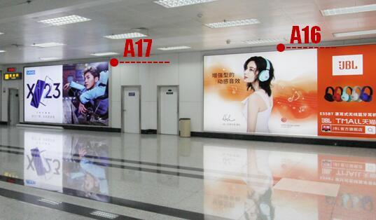 國內t2到達層東西支廊墻面燈箱廣告