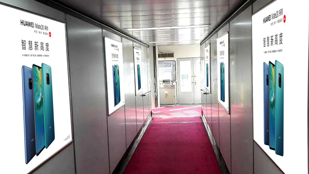 媒體位于T1航站樓5個廊橋移動端,100%覆蓋所有國內出發到達旅客。