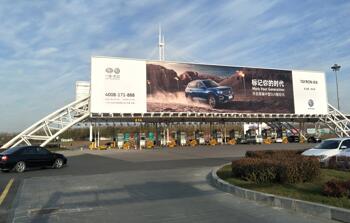 廣告位置:機場停車場收費站出入口 正迎面 廣告編號:SY-LM02 廣告規格:10m×60m×2面=1200m2 數量:1 廣告形式:收費站龍門 媒體價格:1360萬元/年/座 |