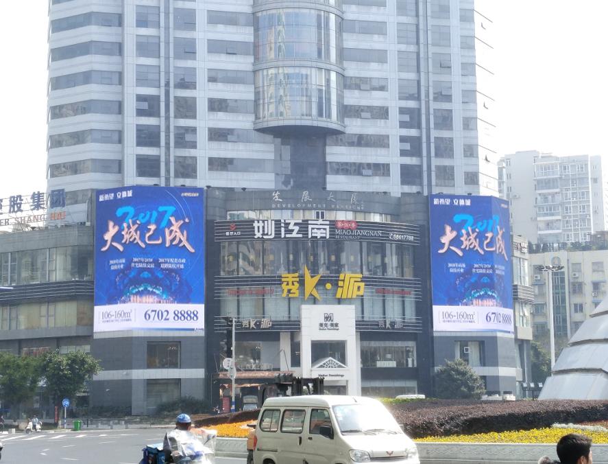 媒體位置:府東路與新城大道交匯處的發展大廈外墻面