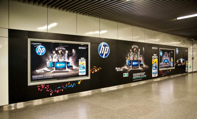 月臺(tái)廣告和地下通道廣告。龐大多節(jié)的內(nèi)部車廂以及超長(zhǎng)的換乘通道的墻壁空間,再加上燈火通明的候車月臺(tái),為北京地鐵廣告發(fā)布提供了