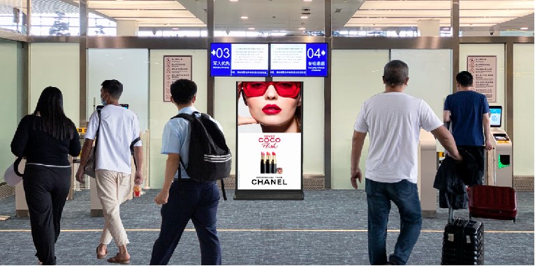 青島膠東機場led廣告 3F國內出發安檢口電子刷屏廣告請聯系青島膠東機場廣告公司