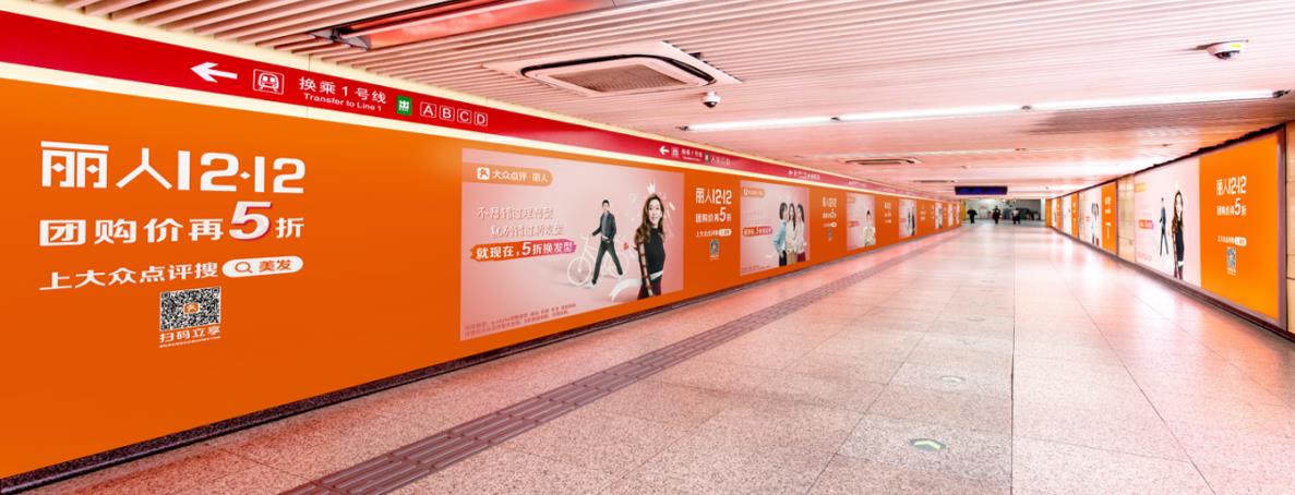 媒體位置:5號線東單南換乘通道北墻豪華燈箱10塊+南墻墻貼