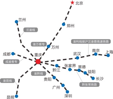 國(guó)家將重慶定位為國(guó)家綜合性鐵路樞紐和國(guó)際性綜合交通樞紐。重慶北站鐵路綜合交通樞紐以承擔(dān)滬漢渝蓉客車(chē)作業(yè)為主,實(shí)現(xiàn)沿江通道中成渝中線(xiàn)高鐵與渝漢高鐵的貫通運(yùn)行。隨著渝貴鐵路的正式通車(chē),重慶邁入全國(guó)高鐵線(xiàn)路密集城市的腳步變得更快了。