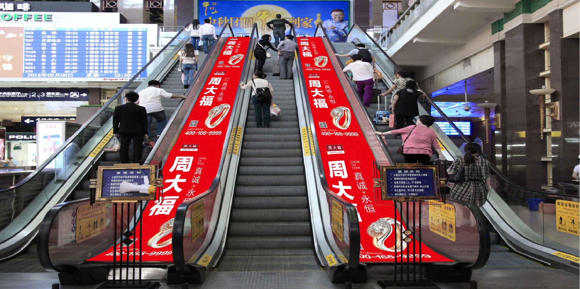 北京站廣告:進站大廳一層滾梯中縫
