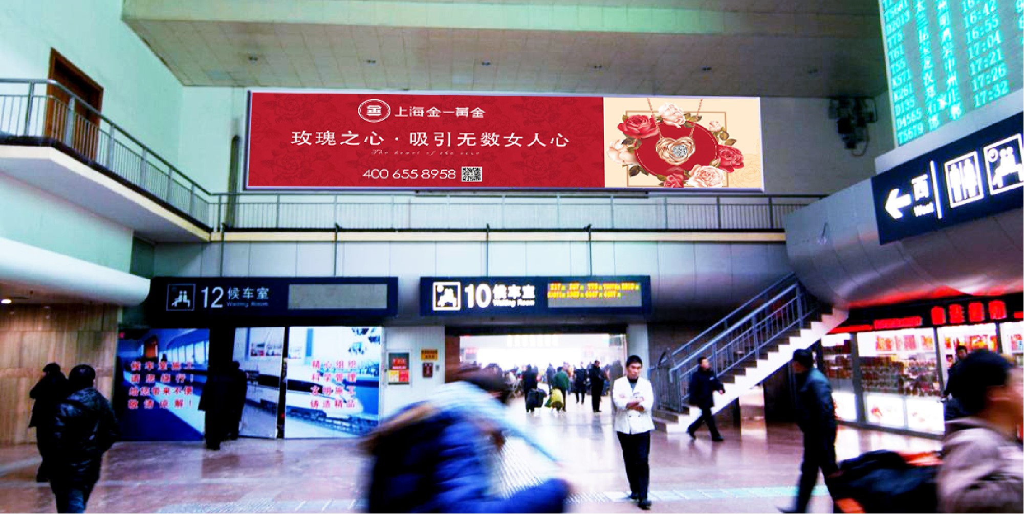 媒體優(yōu)勢:覆蓋所有進站人群,彰顯品牌實力。1、進站必經,強制閱讀——該媒體位于北一層進站大廳,強制覆蓋所有進站人群,到達率100%。 2、大畫幅展示——巨幅畫面凸顯品牌氣勢,彰顯品牌實力。