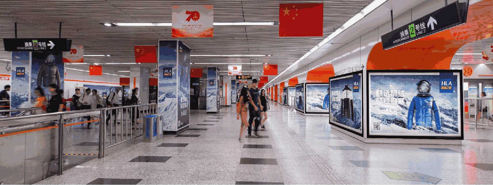 5.9m*2.8m,視覺效果強烈 創意空間大,彰顯品牌大氣 全線共有20塊,均為換乘必經區域