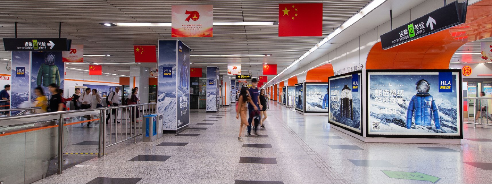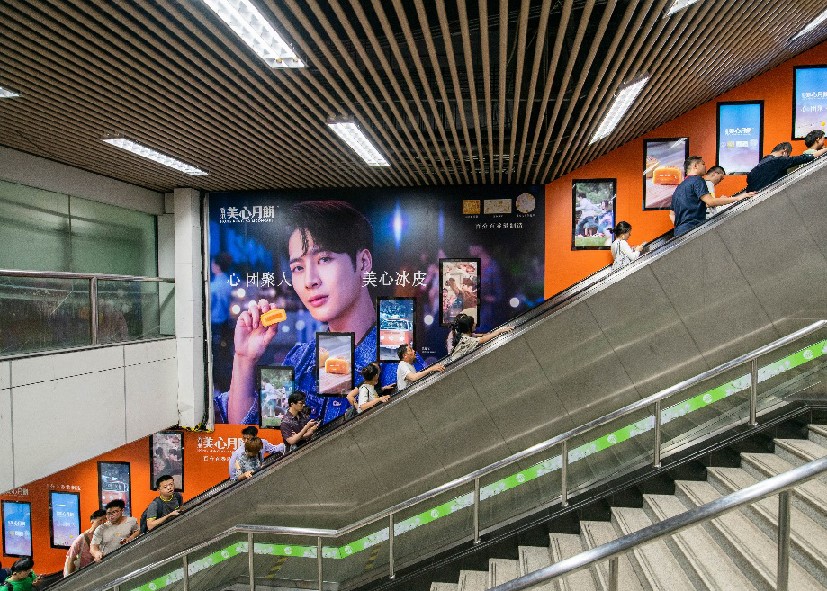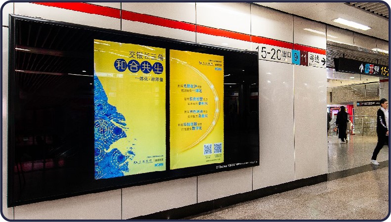 5.9m*2.8m,視覺效果強烈 創意空間大,彰顯品牌大氣 全線共有20塊,均為換乘必經區域