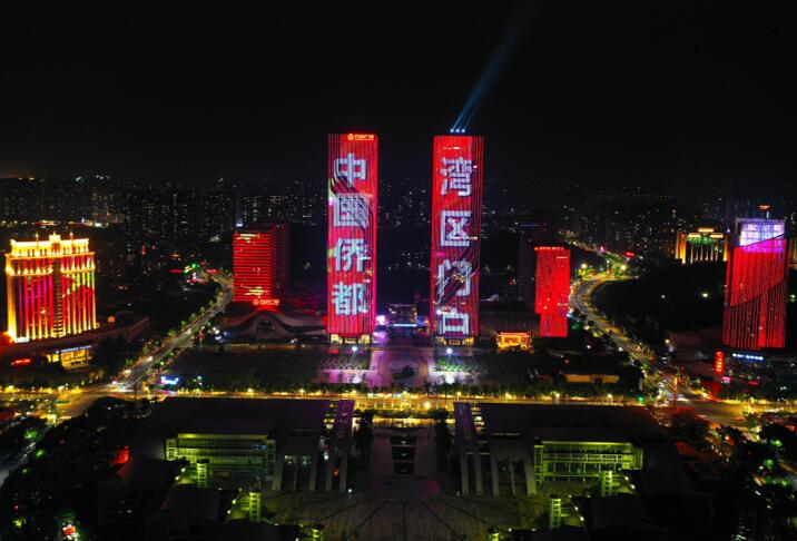 江門地標(biāo)廣告,江門蓬江萬達(dá)雙子塔樓體燈光秀廣告,江門燈光秀廣告,萬事成傳媒