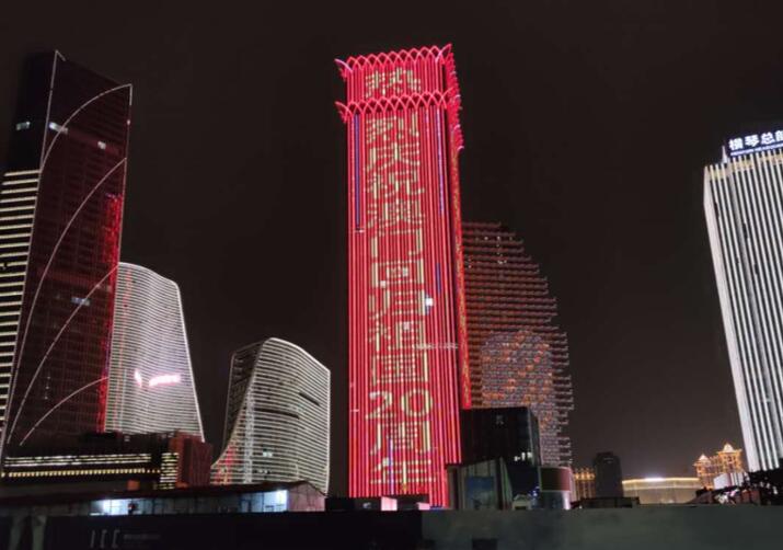 珠海地標廣告,珠海橫琴國貿大廈樓體燈光秀廣告,珠海燈光秀廣告,萬事成傳媒