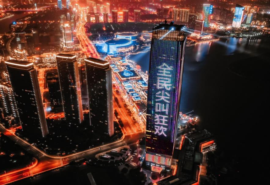 無敵景觀-太湖第一高樓;360度環(huán)繞瞰盛宴;231 米 高;1 0 萬 方;日均人流 1 0 0 萬;環(huán)太湖中心;萬顆星光點亮天幕;5 A 甲 級 環(huán) 幕全 景呈 現(xiàn)