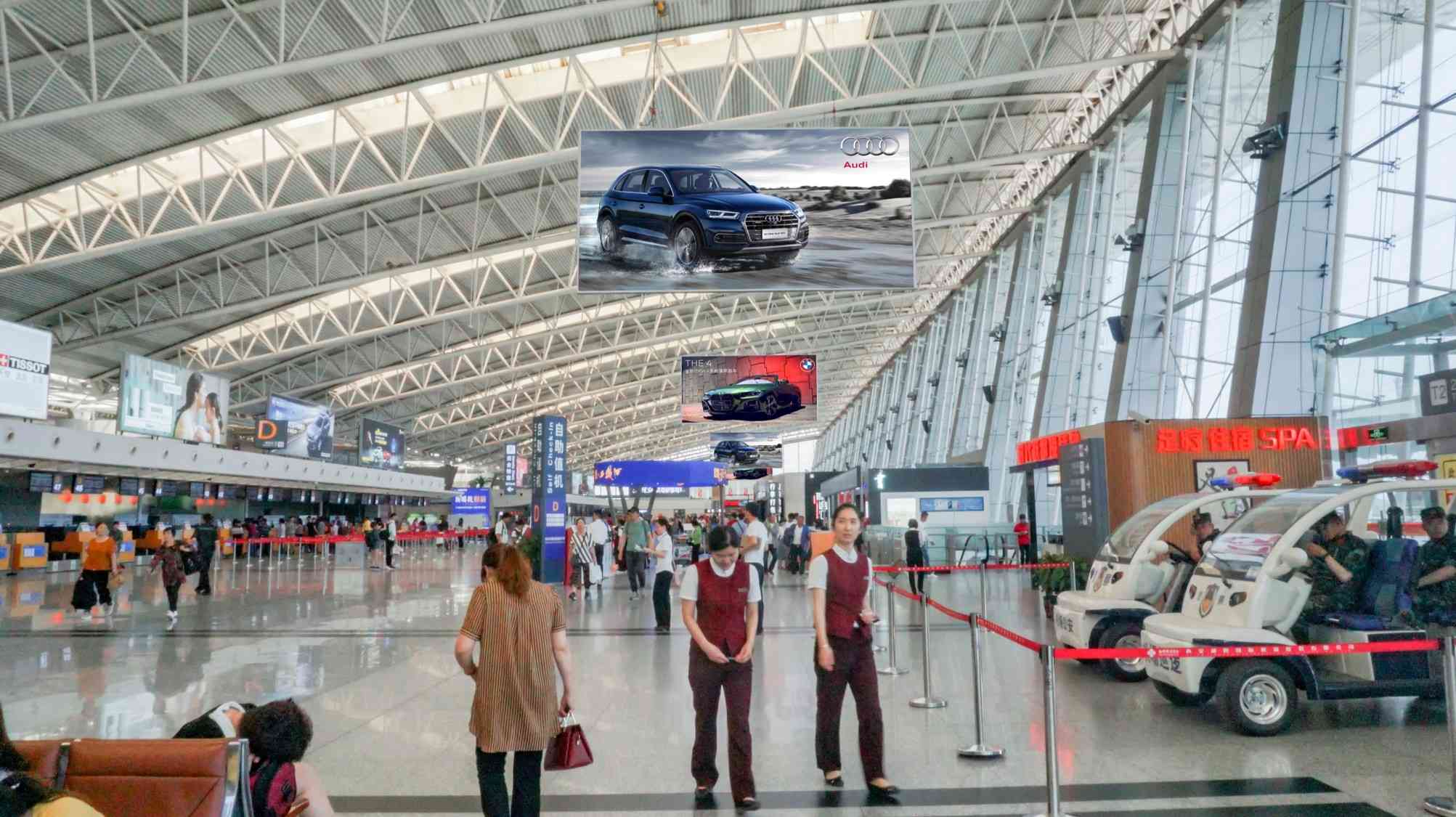 西安咸陽機場廣告,咸陽機場T2航站樓國內出發懸掛燈箱廣告