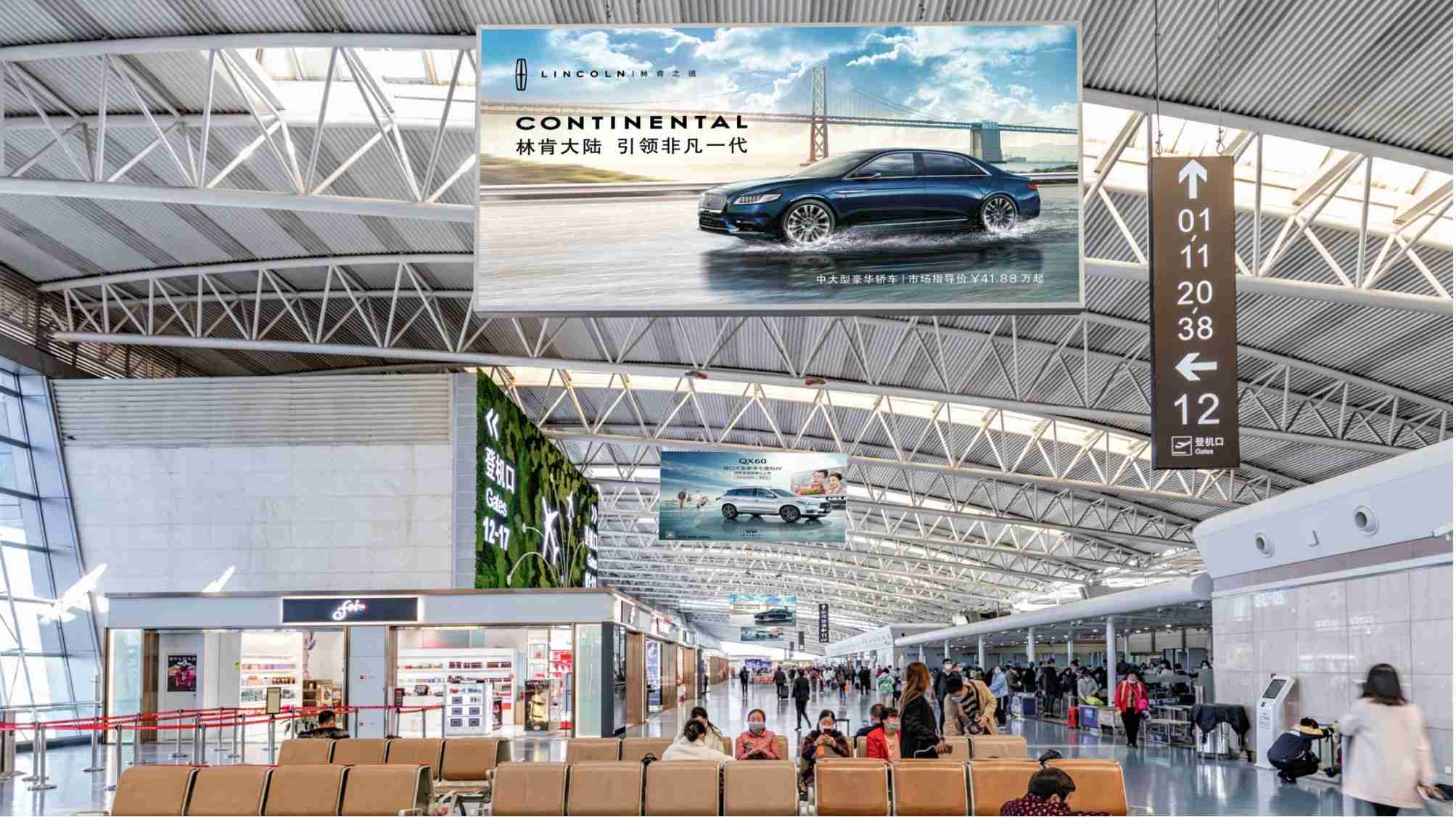 西安咸陽機場T2航站樓國內出發懸掛燈箱廣告,萬事成傳媒