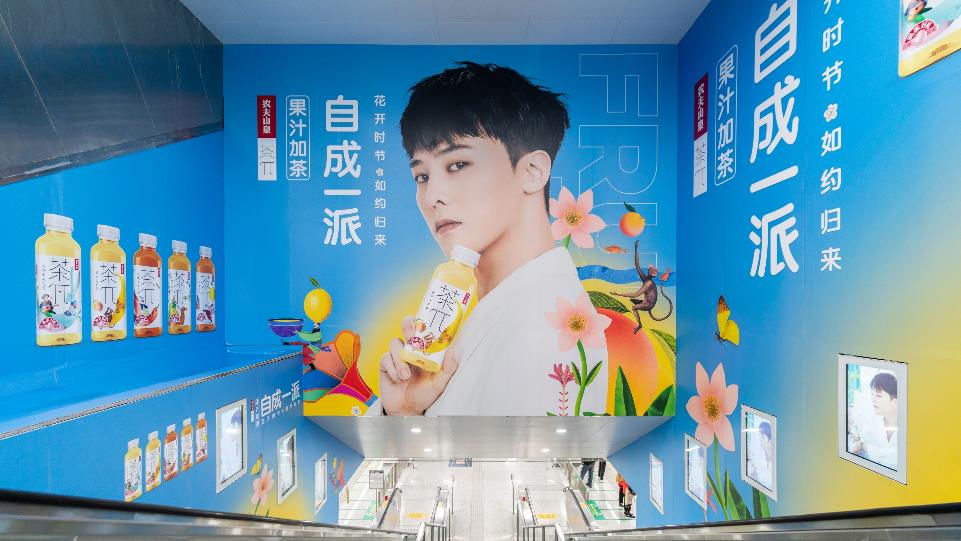 S+:建國北路站“影隨人動”電子梯牌品牌專區01 墻貼(274.4㎡)+32x電子梯牌+1x包柱;