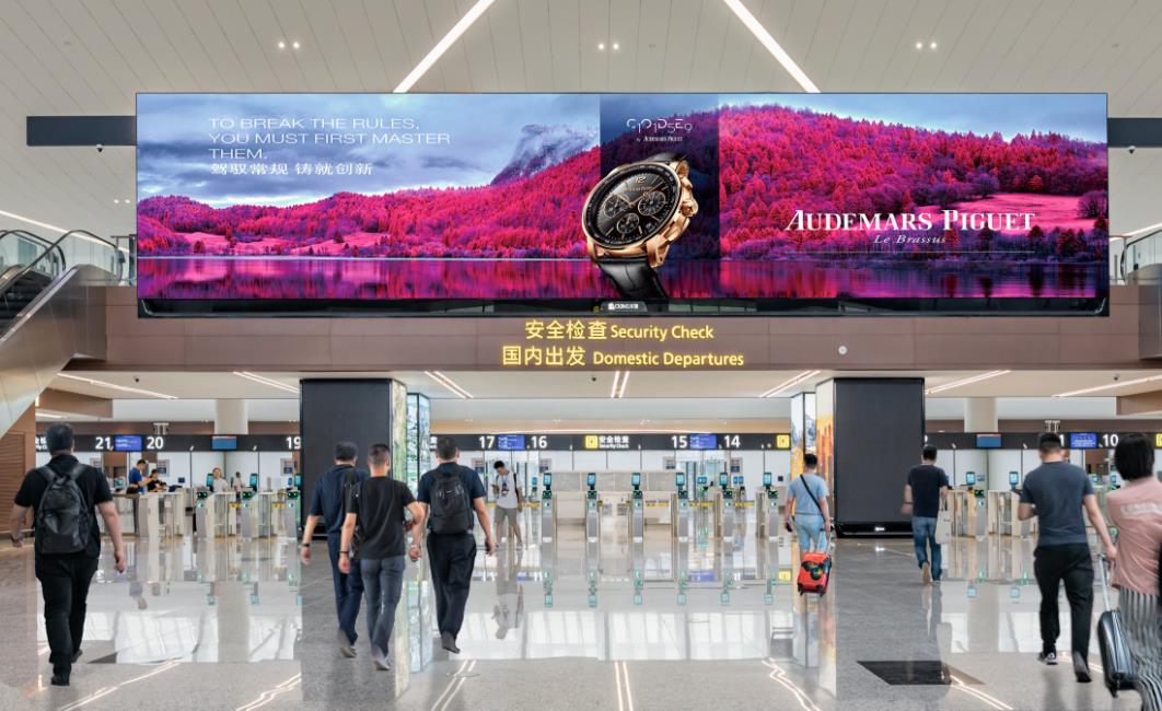 成都天府機場廣告-天府機場T2航站樓出發大廳安檢前led廣告