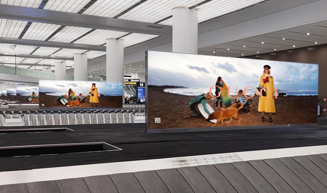 青島膠東機(jī)場(chǎng)廣告-1F國(guó)內(nèi)到達(dá)行李廳出口正上方led廣告