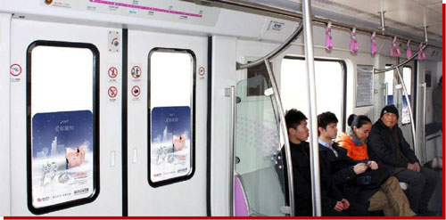 與地鐵乘客最近的廣告媒體——在車內、在上下車之間,廣告將與乘客進行深入的溝通 地鐵人群每周平均乘坐頻次為6.3次,每位地鐵乘客平均乘車時間為29.9分鐘。